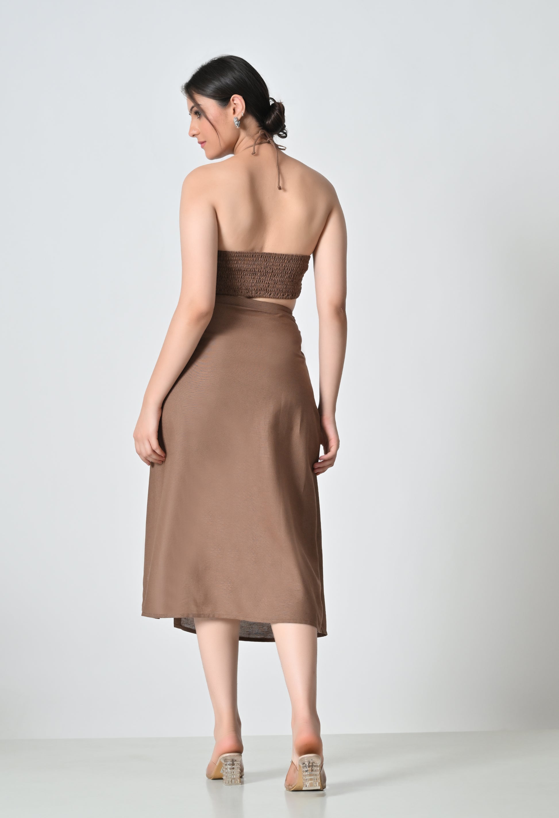 Perfect for brunches, holiday getaways, or dinner plans, this co-ord moves with you and feels light on the skin. Now available in two timeless shades: a deep Black and an earthy Brown – both easy to dress up or down.