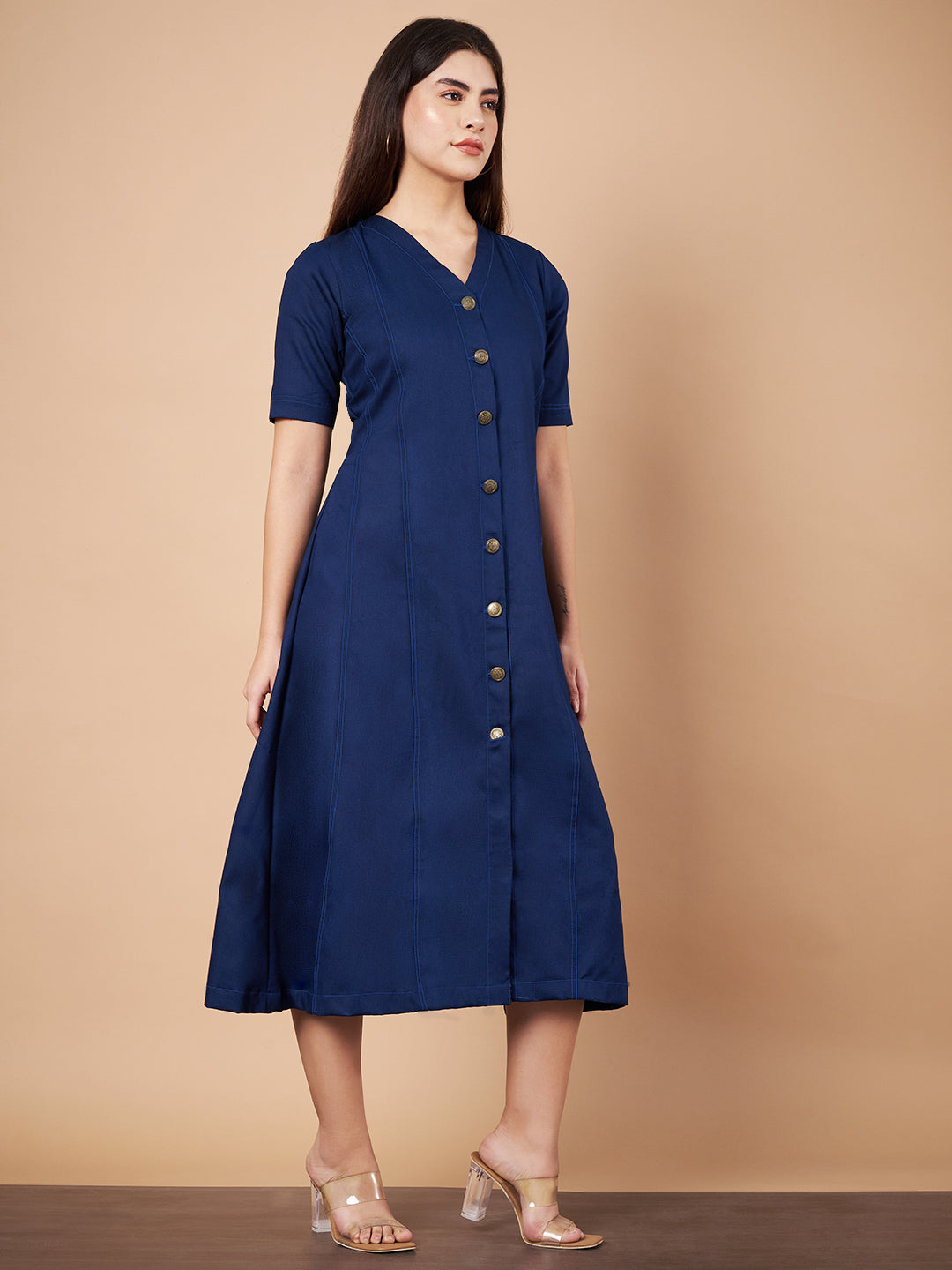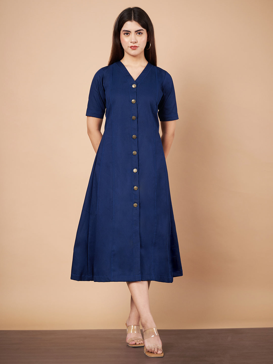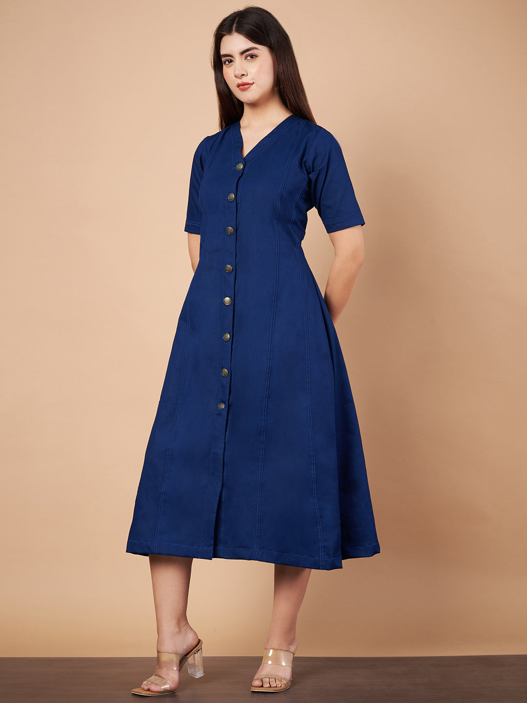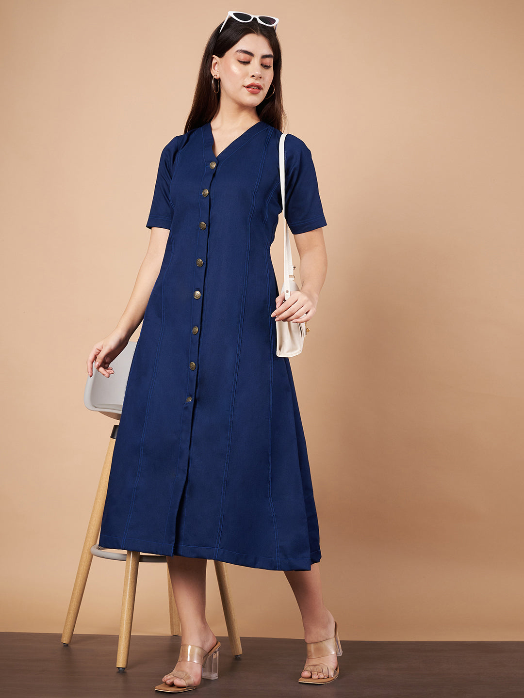 Refresh your wardrobe with our stylish Denim Midi Dresses, a versatile piece that combines timeless denim appeal with modern details. Featuring a flattering V-neckline and short sleeves, this dress offers an easy, relaxed fit for all-day comfort. Its button-down front adds a touch of casual sophistication, making it perfect for everything from brunch outings to weekend strolls.
